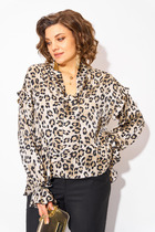 Блузка свободного силуэта выполнена из смесовой струящейся ткани. Модель в вертикальную полоску дополнена золотистыми рельефными пуговицами. Свободный силуэт подходит для любой фигуры. Для идеального роскошного образа используйте в качестве низа брюки светлых тонов. На спинке изделия фирменный металлический логотип бренда.