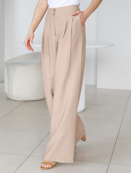 Совместные покупки Тюмень Женская одежда Брюки — 06.04 Vilatte Брюки-палаццо из плотного лиоцелла D24.267 светло-бежевый