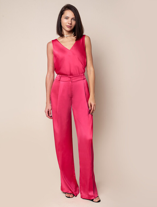 Vilatte Брюки-палаццо из полуматового плотного сатина D24.534 viva magenta