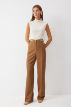 Брюки прямого кроя с – универсальный предмет весеннего гардероба. Высокая посадка и стрелки зрительно увеличивают рост и визуально стройнят. Ткань брюк: поливискоза с эластаном, гарантирует непревзайденный комфорт и формоустойчивость, хорошо тянется и не мнется. В таких брюках будет комфортно даже летом, благодаря наличию вискозы в ткани. Тело будет всегда дышать. Классическая длина отлично сочетается с обувью в любом стиле и подходит всем типам фигуры.