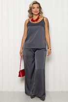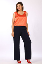 Брюки свободного кроя выполнены из костюмной ткани в полоску. Модель с карманами и поясом на резинке дополнена регулируемым шнурком из основной ткани. Изделие не сковывает движений и подходит для любого типа фигуры. Сочетается в костюме с жилетом D27.001