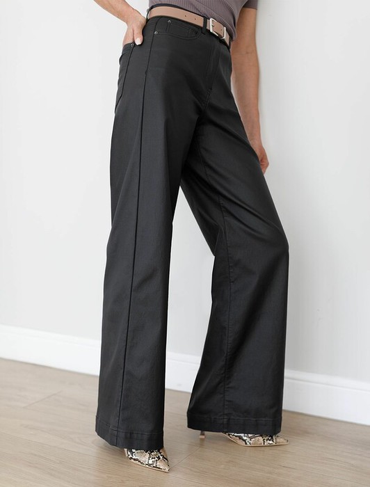 Совместные покупки Тюмень Женская одежда Брюки — Vilatte Брюки-трубы из эластичного хлопка с эффектом кожи D24.277 черный