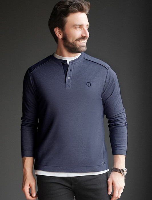 Джемпер хенли цвета хаки из полотна пике, состоящий из двух оттенков нити, создающем эффект меланж. Мягкая и дышащая ткань обеспечивает комфорт в течение всего дня, позволяя коже дышать и поддерживать оптимальную воздухопроницаемость. Материал тянется, обеспечивает долговечность и сохраняет презентабельный внешний вид даже после многократных стирок.
