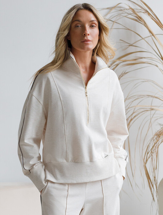 Vilatte Джемпер из эластичного футера двухнитки с воротом на молнии D49.086 беже