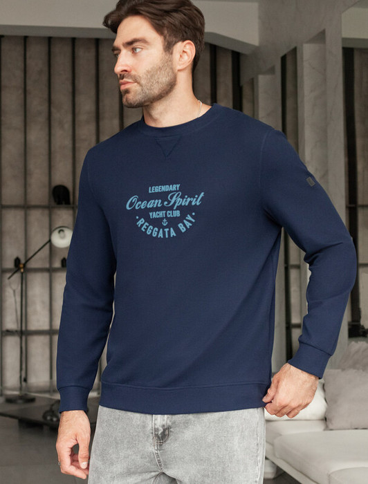 Совместные покупки Тюмень Мужская одежда Джемперы, свитеры — Vilatte Джемпер из фактурного трикотажа U49.061 св.синий_ocean spirit