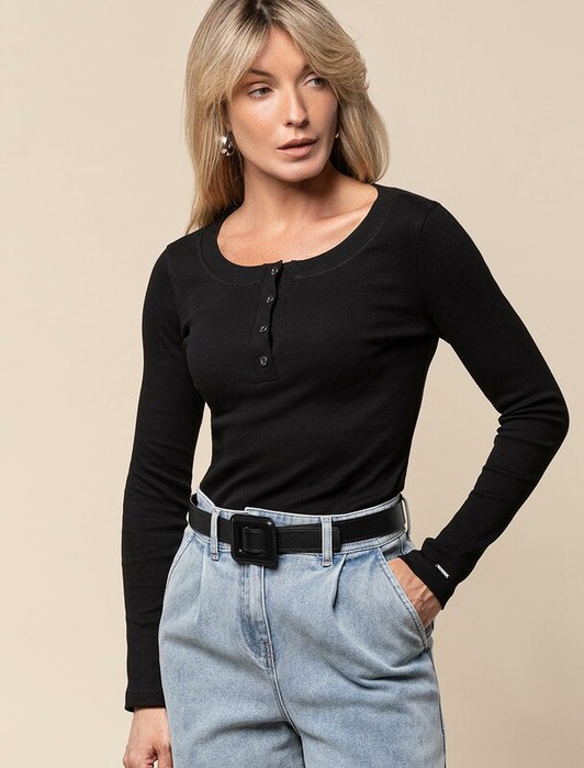Джемпер с декоративными пуговицами выполнен из фактурного трикотажа в рубчик. Модель идеально сидит по фигуре не сковывая движения. Хлопковый трикотаж поддерживает оптимальную температуру тела, поэтому в изделии будет комфортно в течении всего дня. Наличие эластана в составе гарантирует формоустойчивости. Базовая модель впишется в любой гардероб.