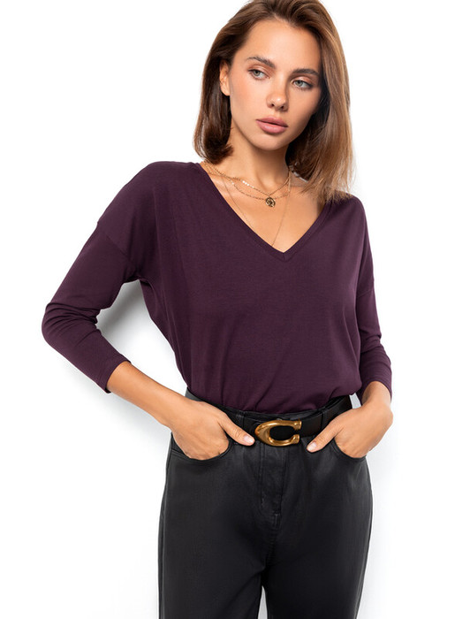 Vilatte Джемпер из премиального хлопка с эластаном D49.957 бургунди