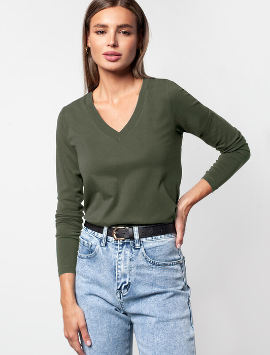 Совместные покупки Тюмень Женская одежда Джемперы, свитеры, водолазки — Vilatte Джемпер из премиального хлопка с эластаном D49.958 темно-оливковый