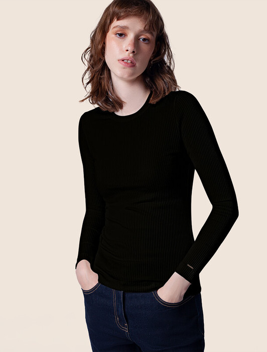 Vilatte Джемпер из трикотажа в широкий рубчик D49.041 черный