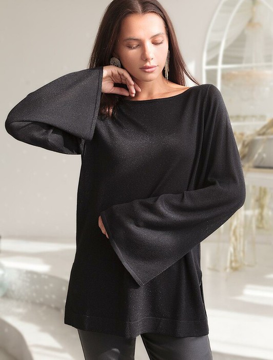 Совместные покупки Тюмень Женская одежда Джемперы, свитеры, водолазки — Vilatte Джемпер из вискозы тонкой вязки с люрексом D39.319 черный