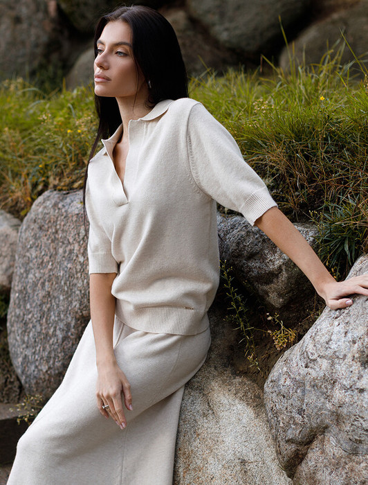 Джемпер с воротом планкой как у поло выполнен из мягкой пряжи с кашемиром. Модель с коротким рукавом свободного силуэта. Благодаря своей универсальности подойдет для любого гардероба и в офисный дресс-код. Мягкая пряжа очень приятная к телу, поддержит комфорт на протяжении всего дня, при этом не перегревая. Сочетается в костюме с брюками D38.013, D38.012 и юбкой D36.016
