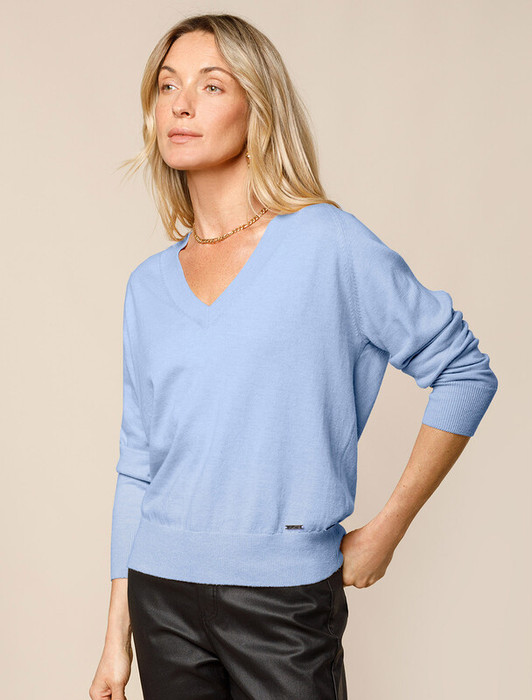 Джемпер тонкой вязки выполнен из хлопка с добавлением кашемира. Модель с V-вырезом свободного силуэта. Мягкая и очень приятная пряжа в рубчик совершенно не колется, сохраняет тепло при этом не перегревая, гарантируя безупречный комфорт.