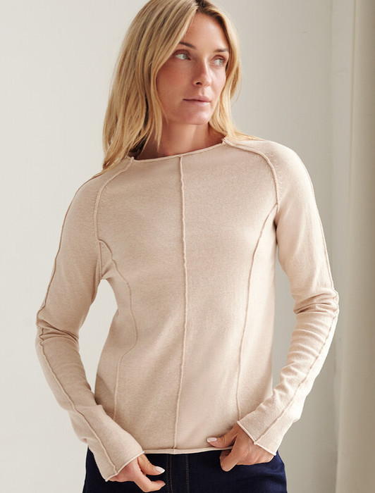 Джемпер тонкой вязки выполнен из мягкой хлопковой пряжи. Модель с декоративными швами идеально сидит по фигуре подчеркиваяч изгибы тела. Подходит для любой фигуры и впишется в любой гардероб. Изделие дополнено металлическим логотипом бренда.