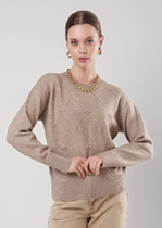 Vilatte Джемпер тонкой вязки из хлопка с нейлоном D39.354 бежевый меланж