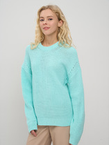 Джемпер тонкой вязки из вискозы с нейлоном. Модель с круглым вырезом прилегающего силуэта. Мягкая очень приятная к коже пряжа хорошо держит форму и гарантирует комфорт во время носки в течение всего дня. Изделие дополнено фирменным металлическим логотипом бренда.
