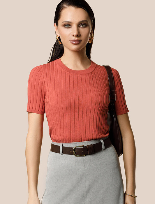 Заказать 22.03 Vilatte Джемпер тонкой вязки из вискозы с нейлоном D39.318 терракотовый