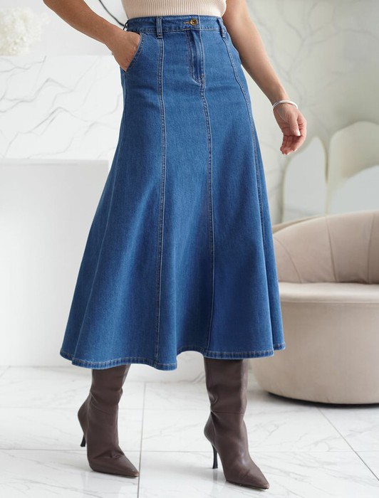 Заказать Vilatte Джинсовая юбка миди А силуэта с декоративными швами из эластичного деним