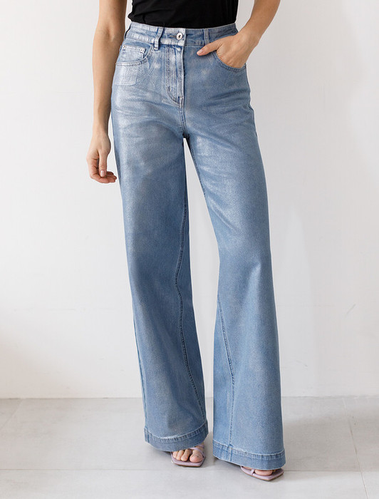 Совместные покупки Тюмень Женская одежда Джинсы — Vilatte Джинсы-трубы с металлизированным покрытием D54.219 голубой-серебряный