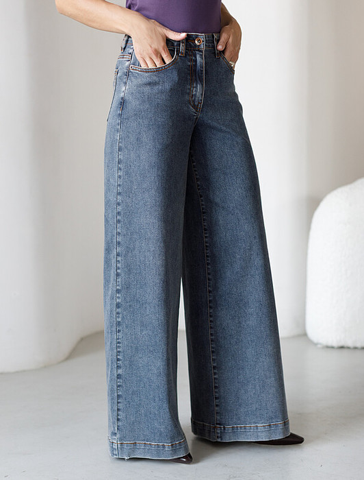 Совместные покупки Тюмень Женская одежда Джинсы — Vilatte Джинсы трубы широкие с декоративной стиркой из эластичного денима D54.29