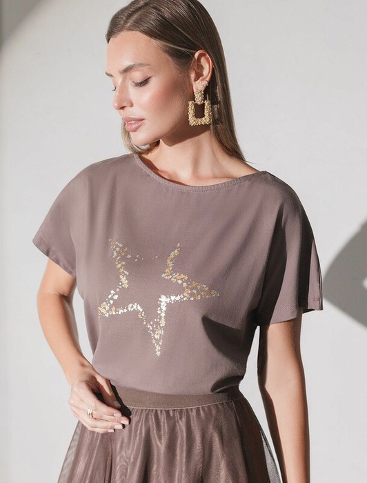 Совместные покупки Тюмень Женская одежда Футболки — Vilatte Футболка D49.133 кофейный_star