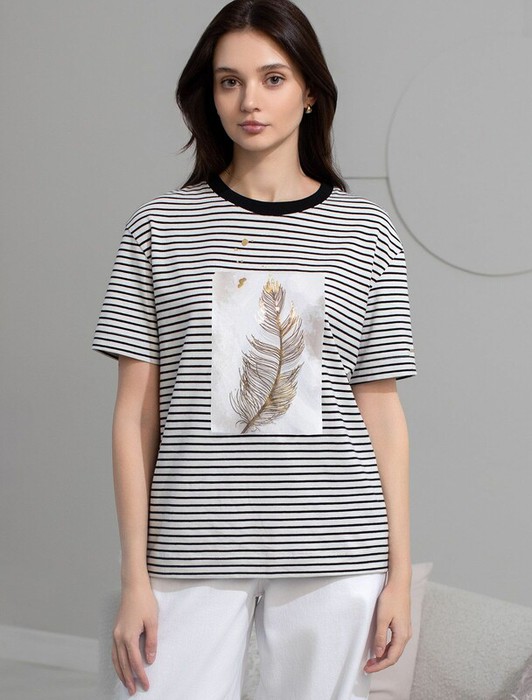 Совместные покупки Тюмень Женская одежда Футболки — Vilatte Футболка D49.145 белый-черный_перо