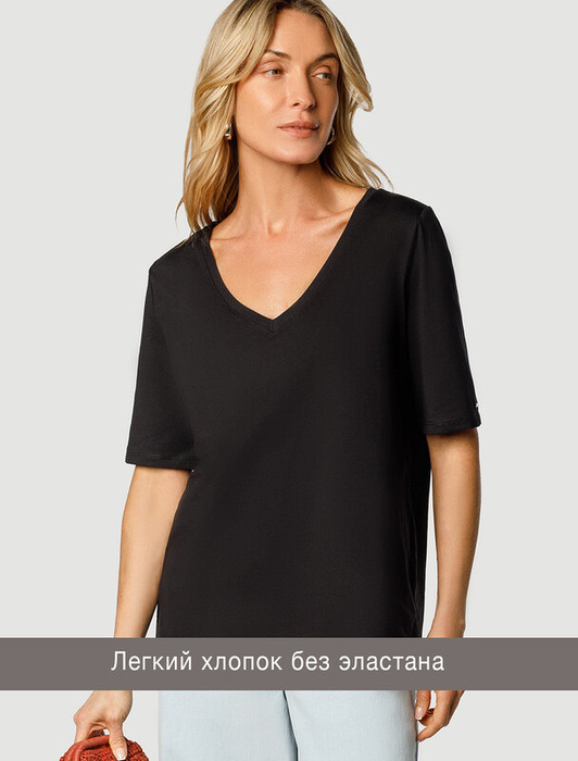 Совместные покупки Тюмень Женская одежда Футболки — 22.03 Vilatte Футболка из 100% хлопка с V-образным вырезом D49.091 черный