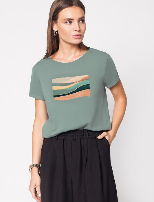 Совместные покупки Тюмень Женская одежда Футболки — Vilatte Футболка из эластичного хлопка с принтом стразы