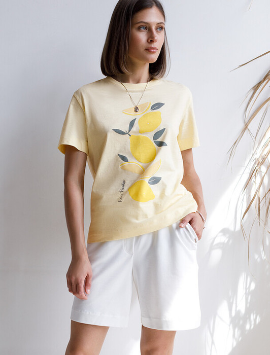 Vilatte Футболка из фактурного полотна с авторским принтом D49.071 банановый_lem