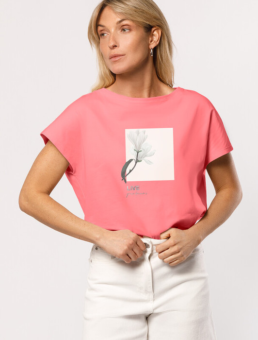 Совместные покупки Тюмень Женская одежда Футболки — Vilatte Футболка из хлопкового облегченного полотна с принтом фольгой D49.020 ро