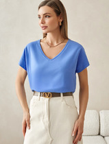 Футболка с цельнокроеным рукавом выполнена из премиального хлопка. Базовая однотонная модель идеально впишется в любой гардероб. V-вырез подчеркивает ключицы и удлиняет шею, хорошо сочетается с жакетами или кардиганами. Изделие дополнено металлическим логотипом бренда.