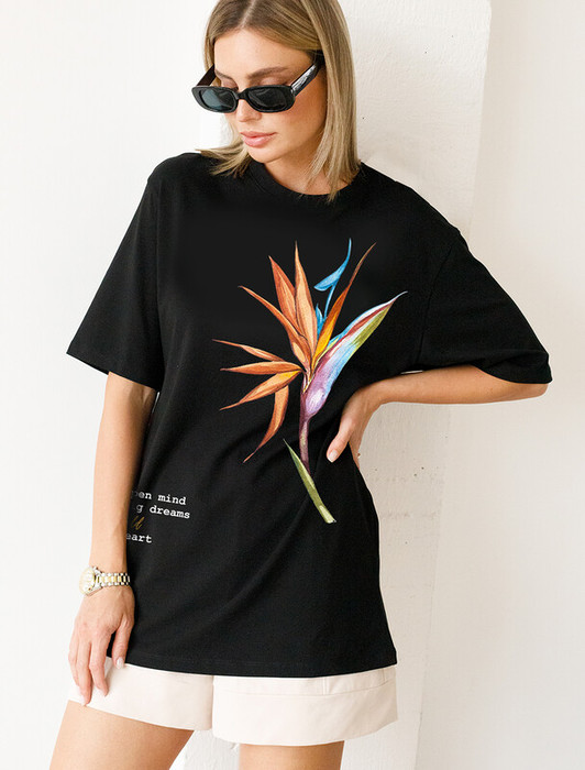 Совместные покупки Тюмень Женская одежда Футболки — Vilatte Футболка из премиального хлопка с авторским принтом фольгой D49.978 чер