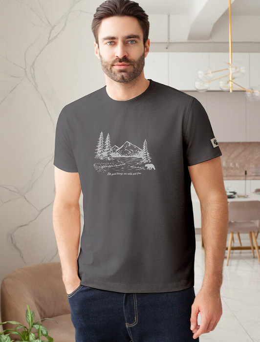 Совместные покупки Тюмень Мужская одежда Футболки — Vilatte Футболка из премиального хлопка с авторским принтом U49.045 серый_outdoo