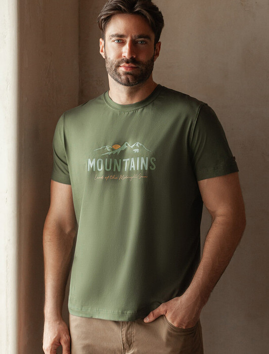 Совместные покупки Тюмень Мужская одежда Футболки — Vilatte Футболка из премиального хлопка с авторским принтом U49.045 т.оливковый_
