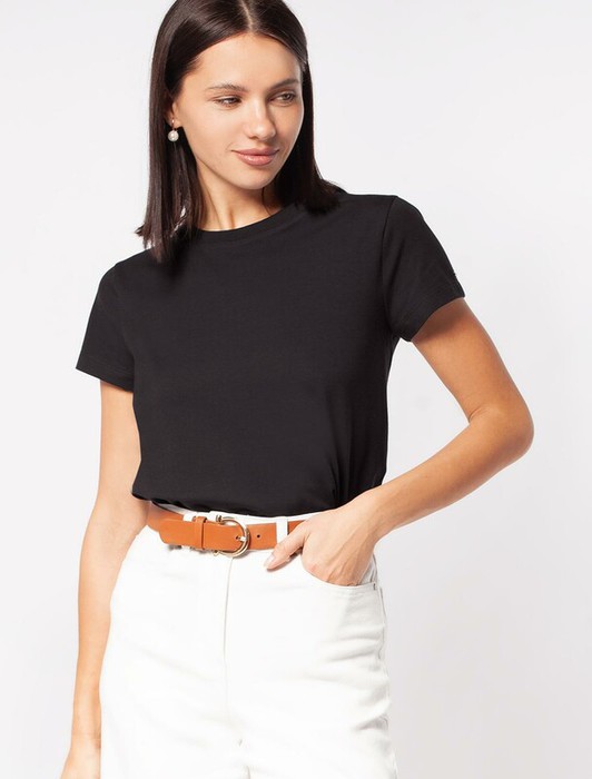 Совместные покупки Тюмень Женская одежда Футболки — Vilatte Футболка из премиального хлопка с эластаном D49.030 черный