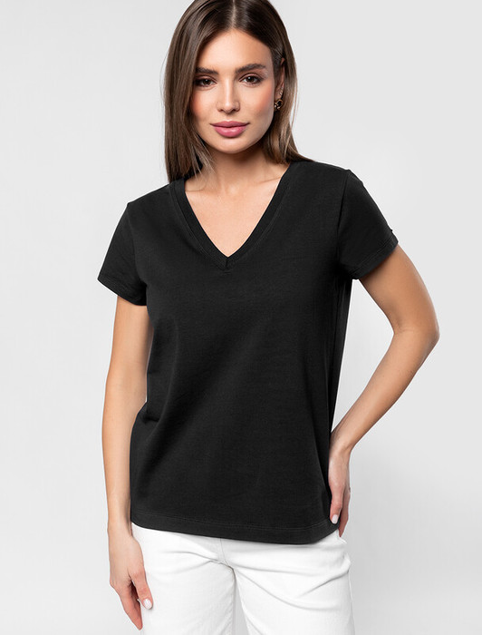 Совместные покупки Тюмень Женская одежда Футболки — Vilatte Футболка из премиального хлопка с эластаном D49.982 черный
