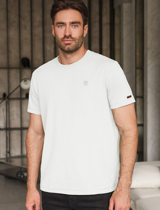 Однотонная футболка выполнена в минималистичном стиле, дополнена аккуратной вышивкой на груди в виде буквы V в тон изделия, а так нашивкой на рукаве из эко-кожи с логотипом VILATTE. Подходит как классический вариант для работы в офисе под пиджак, так и для повседневной носки или занятий спортом. Мягкая ткань приятна к телу, не вызывает дискомфорта и идеально подходит для дома или летних прогулок благодаря короткому рукаву.