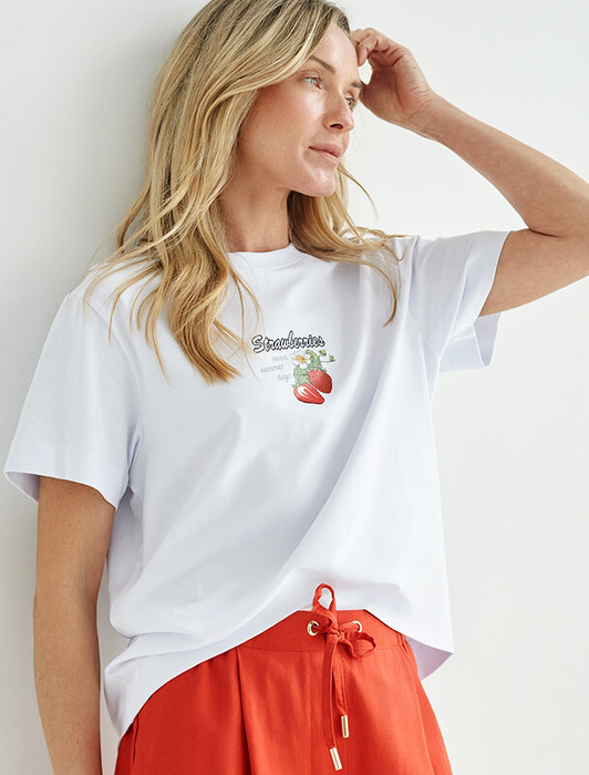 Vilatte Футболка из премиального хлопка с принтом фольгой D49.098 белый_клубника