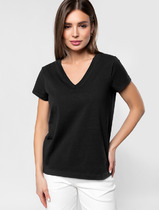 Футболка выполнена из трикотажа в широкий рубчик. Эластичный хлопковый трикотаж сидит по фигуре, не сковывает движений и очень комфортный в носке. Фактура вертикальных полос визуально стройнит и вытягивает силуэт. Базовое изделие хорошо впишется в любой гардероб. Идеально подходит для многослойных образов.