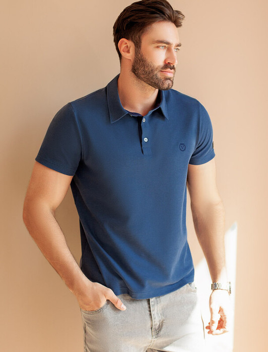 Vilatte Футболка-поло из фактурного трикотажа U49.047 т.синий