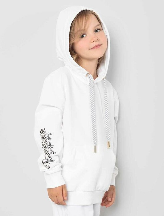 Совместные покупки Тюмень Детская одежда Джемперы, свитеры — Vilatte Худи из премиального футера с принтом F49.407 белый