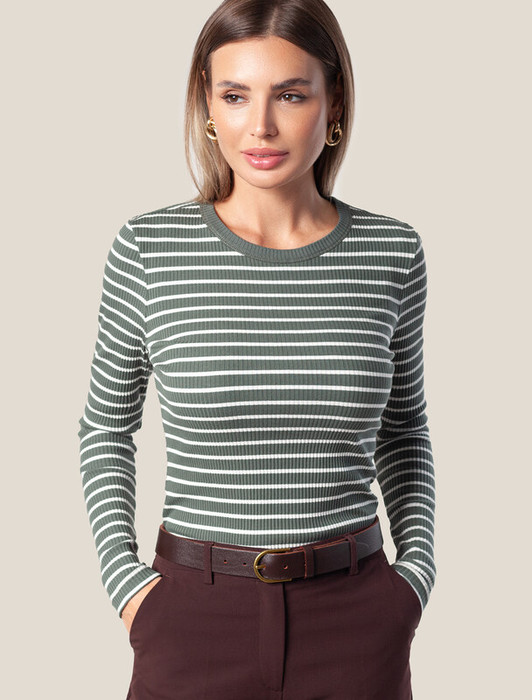 — Vilatte Лонгслив из трикотажа в широкий рубчик D49.984 оливковый-белый