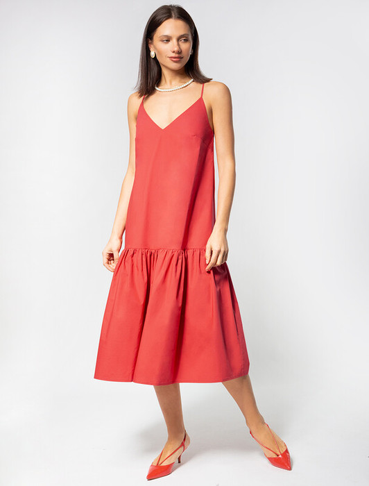 Совместные покупки Тюмень Женская одежда Платья — Vilatte Платье из поплина с регулируемыми бретелями D22.205 темно-коралловый
