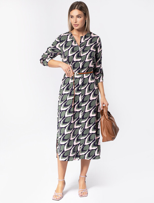 Vilatte Платье из премиальной вискозы-твила D22.189 оливковый-пудровый
