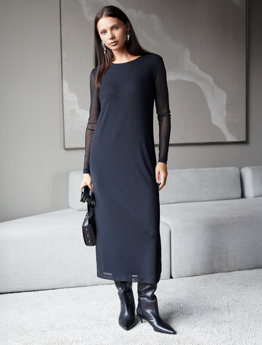 — Vilatte Платье из сетки с подкладкой D22.238 черный