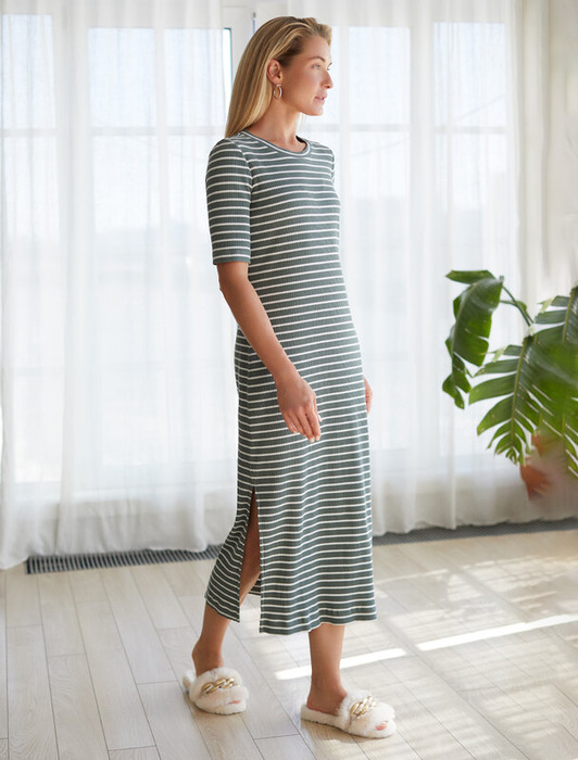 — 27.03 Vilatte Платье из трикотажа в широкий рубчик с разрезами D42.096 оливковы