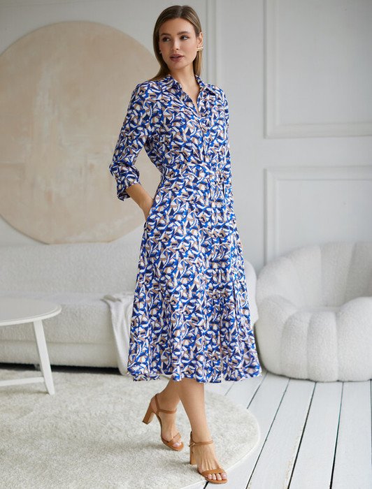 Vilatte Платье из вискозы твил D22.224 синий-бежевый