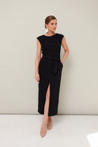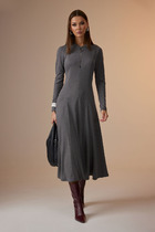 Платье тонкой вязки выполнено из хлопка. Лаконичная модель с высоким воротом дополнена манжетами и разрезами по бокам. Изделие свободно сидит по фигуре и не сковывает движений. Мягкая пряжа очень приятная к телу не колется и сохраняет тепло при этом не перегревая. Изделие дополнено металлическим логотипом бренда.