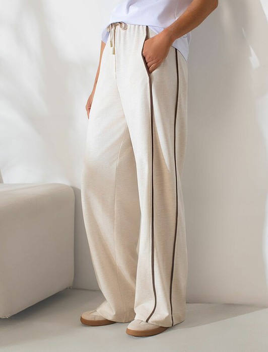 Совместные покупки Тюмень Женская одежда Спортивные штаны — Vilatte Прямые брюки с лампасами из эластичного футера двухнитки без начеса D44.