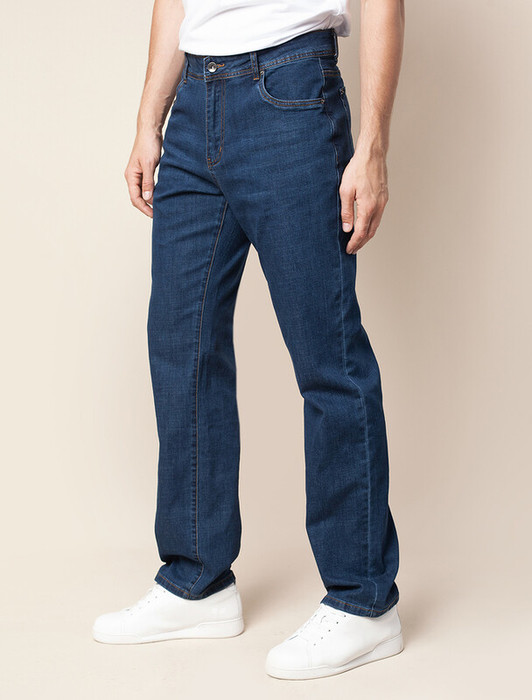 Базовые прямые джинсы выполнены из хлопка с добавлением эластана. Отлично держат форму почти не мнутся, не деформируется даже после множества стирок. Модель подходит абсолютно любому типу фигуры и вписывается в гардероб с любым верхом и обувью.
