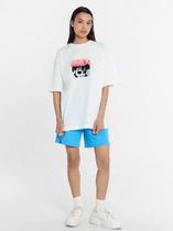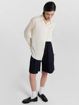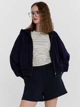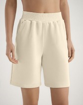 Шорты выполнены из футера двухнитки с эластаном. Модель прямого кроя дополнена боковыми карманами и одним задним карманом.  Пояс выполнен из эластичного трикотажа в рубчик. В пояс вставлен плоский хлопковый шнур в тон изделия с серебристыми наконечниками. Изделие дополнено металлическим логотипом бренда. Сочетается в костюме с жакетом D49.078, джемпером D49.079, D49.080 и футболкой D49.081